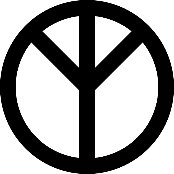 With the central lines forming a human with its hands questioning at its sides peace sign upside down. Hippies often flashed this sign (palm out) while saying "peace", .